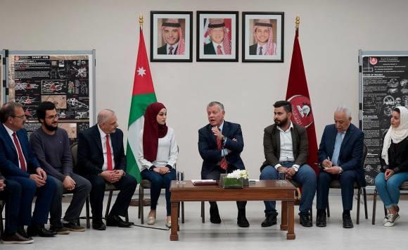 "ارتفعت معنوياتي بما شاهدته من إنتاج وإنجاز في جامعتكم"، بهذه الكلمات خاطب جلالة الملك عبدالله الثاني مجموعة من طلاب وطالبات الجامعة الهاشمية، الذين حاورهم خلال زيارته إلى الجامعة. وقال جلالته "كل الدعم للجهود التي من شأنها تحقيق الإنجازات، خدمةً للوطن"، مضيفاً أنه سيتابع الأفكار الريادية للطلبة ومسيرة العمل والعطاء التي تمضي بها الجامعة الهاشمية.